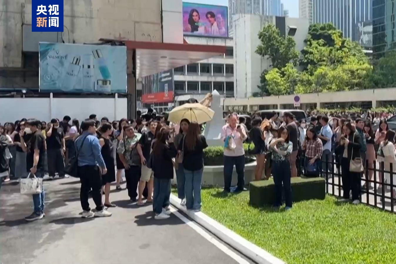 地震发生时,新华社记者身处曼谷市中心一处会展中心,看到会展大厅内的吊灯明显摇晃,随后与其他民众一起从会展中心疏散。在曼谷街头,记者看到不少民众从写字楼、住宅楼等建筑中陆续疏散。